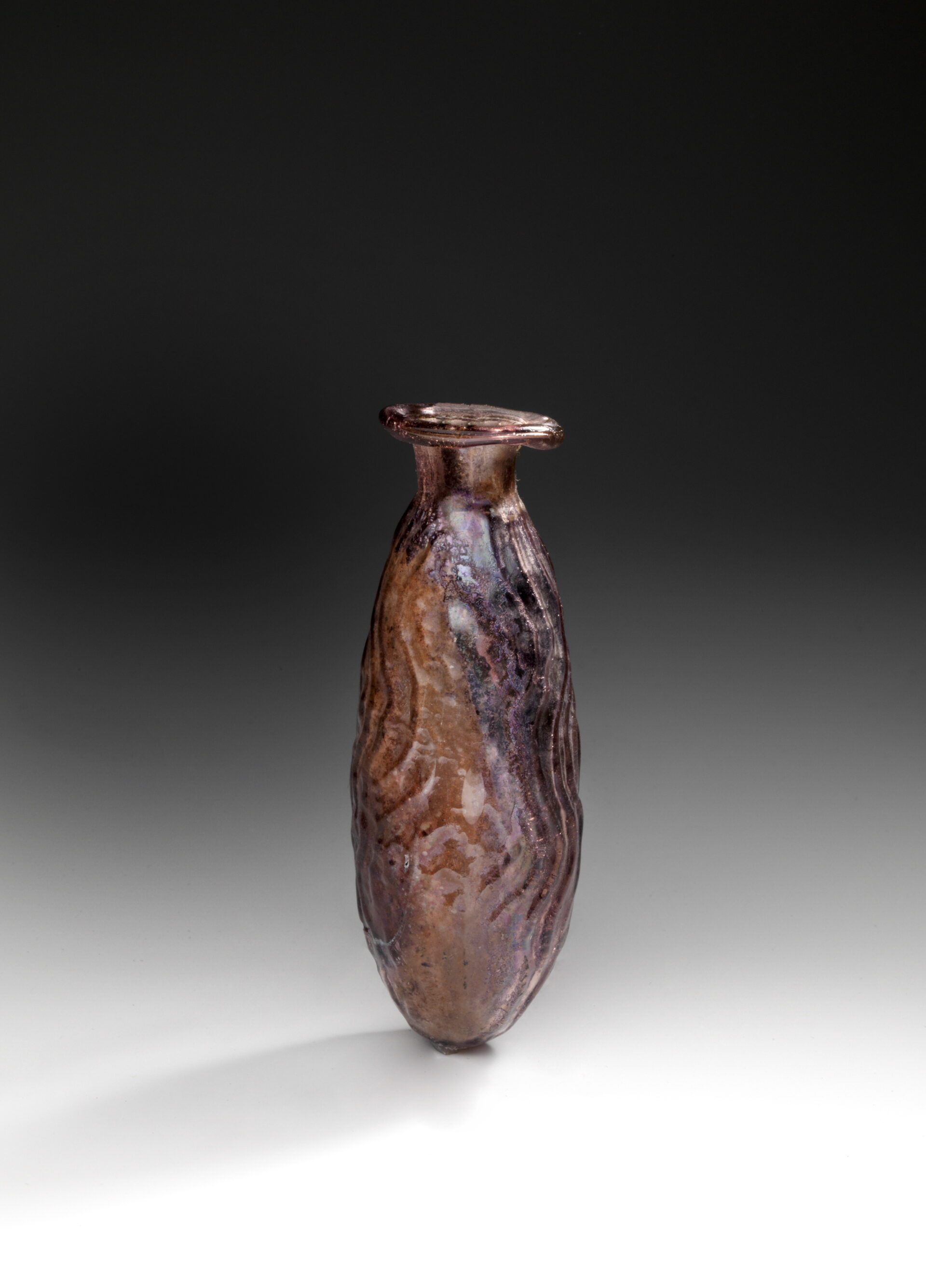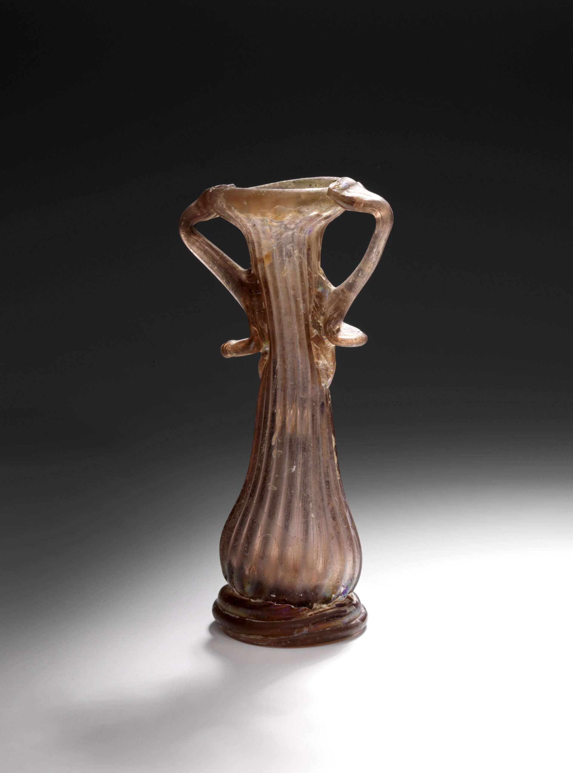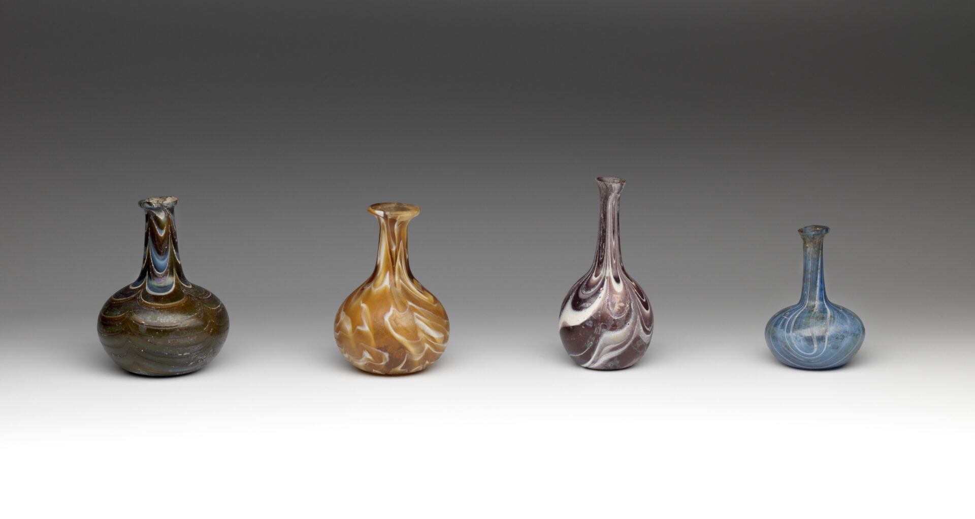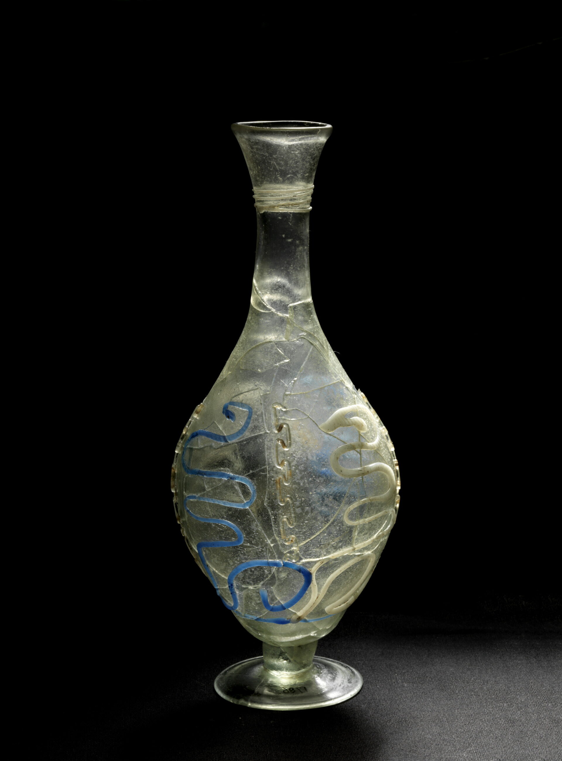 Met name in de Romeinse tijd was glas niet weg te denken uit het dagelijks leven, vergelijkbaar met plastic in de huidige tijd. Wijn en olijfolie werden in grote flessen bewaard, lekker geurende olie in flacons. Er waren allerlei soorten drinkglazen en prachtige figuren van glas sierden deurposten en meubels. Midden eerste eeuw voor Christus is de techniek van het glasblazen, waarschijnlijk bij toeval ontdekt. De eerste geblazen flesjes hadden een simpele vorm die lijkt op een reageerbuis met een soort ballon aan de dichte kant. Al snel ontwikkelde deze techniek van het glasblazen zich en waren de glasblazers in staat om prachtige kannen, flessen, bekers en kommen te blazen. Een volgende stap na de ontdekking van het glasblazen, was het gebruik van een vorm of mal bij het blazen. Zo is bijvoorbeeld een flesje in de vorm van een dadel in de tentoonstelling te zien. Van een echte dadel werd een mal gemaakt waar het glas in geblazen kon worden. Met deze techniek waren de mogelijkheden onbeperkt. De tentoonstelling illustreert dat uitbundig.