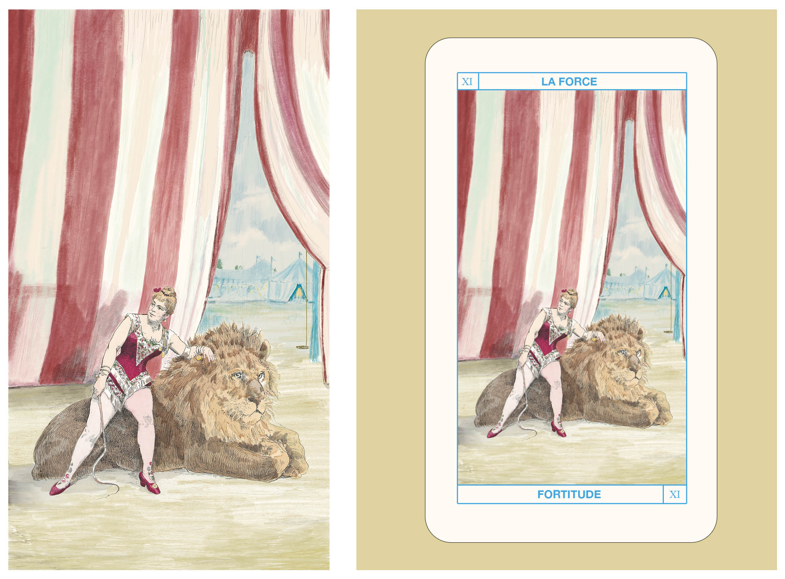 The card ‘la Force’ Strength depicts a female lion tamer. In the Allard Pierson archives we found an impressive number of images of suitable ‘dompteuses’: