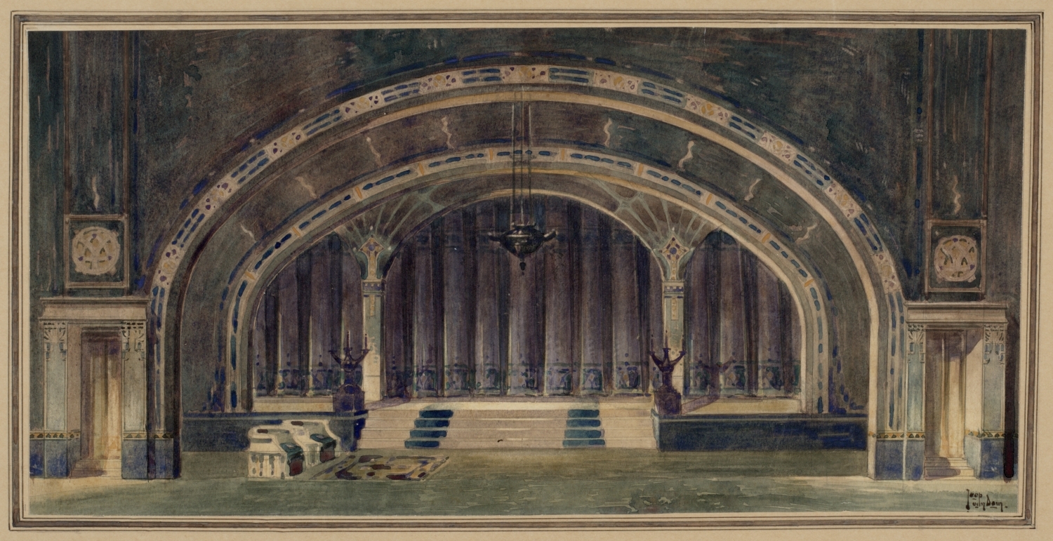 Realistically painted sets, as shown in Baron van Slingelandt’s chamber theatre, were the standard until around 1900. After that, a new era began in which architects, artists, and theatre-makers began experimenting. This was the start of the age of modern scenography. In 1922, the Stedelijk Museum Amsterdam organised a major international exhibition on stage design, featuring works by Hendrik Berlage (1856–1934), Henry van de Velde (1863–1957), and Serge Diaghilev (1872–1929). Hans van Keulen: “The 1922 exhibition was a revolutionary presentation that had a tremendous influence on theatre-makers in the Netherlands and abroad.”